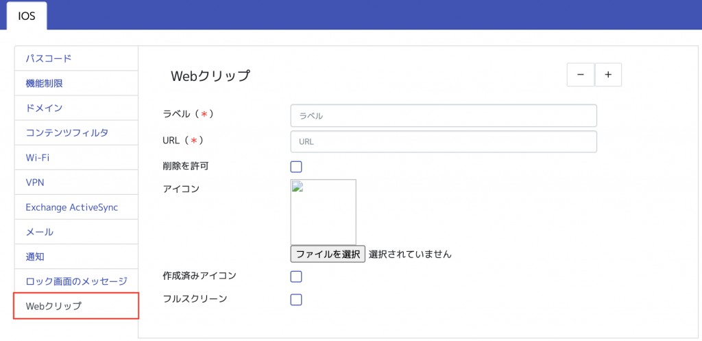 管理画面上にないペイロードを設定する場合は、Apple Configurator2(拡張子=mobileconfig)を使用して作成した後、構成プロファイルをアップロードしてください。